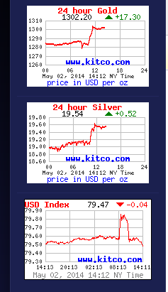 And the Dollar Index dropped back down. It appears that the weak gold and silver players may now be on the sidelines.